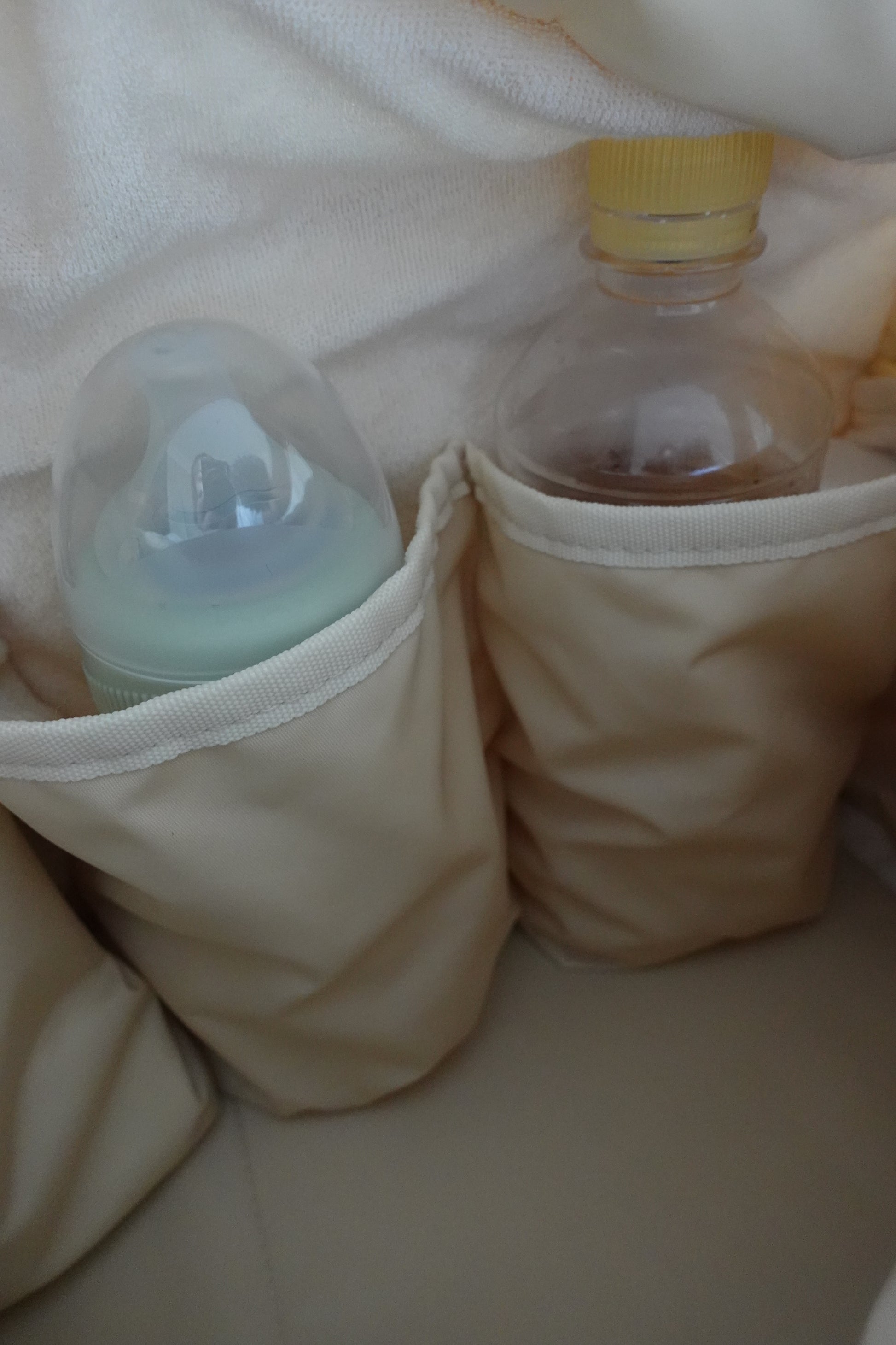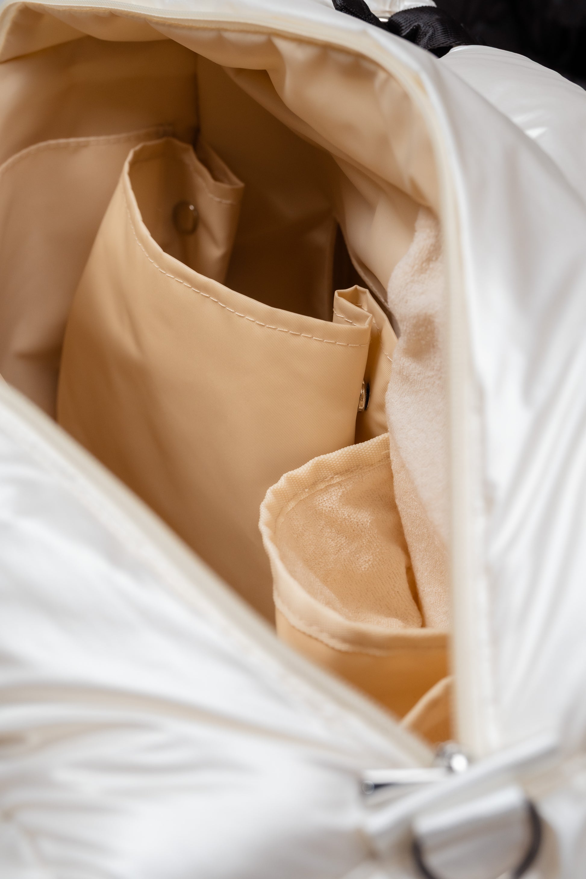 ・内部のボトルポケットはパイル生地を採用し、ボトルの水滴を吸収。